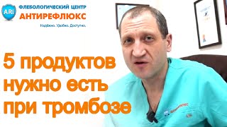 Подпишитесь на наш канал! Наш сайт http://goo.gl/lCrTMO Мы Вконтакте http://vk.com/phleboscience Мы в Twitter https://twitter.com/phleboscience Мы в facebook https://www.facebook.com/Антирефлюкс-952674744754805/ Представляем вашему вниманию ТОП5 наиболее полезных продуктов при тромбофлебите. 5 место: морепродукты — содержат большое количество Омега-3 аминокислот, которые позволяют минимизировать процесс тромбообразования. 4 место: лук и чеснок — данные продукты позволяют мягко воздействовать на процессы тромбообразования, снижая их. 3 место: кисломолочные продукты — помимо прочих полезных свойств, данные продукты обеспечивают синтез витаминов, способствующих ускорению процессов рассасывания тромбов. Также, кисломолочные продукты препятствуют размножению гнилостных бактерий в кишечнике, что не позволяет организму всасывать вредные вещества, которые способствуют появлению тромбов. 2 место: вода — обезвоживание, один из факторов риска тромбообразования. В день необходимо потреблять не менее полутора литров воды. 1 место: свекла — является одним из самых действенных средств против запоров. При появлении запоров, происходит резкое замедление тока крови в ногах. В результате чего, возрастает риск тромбоза.